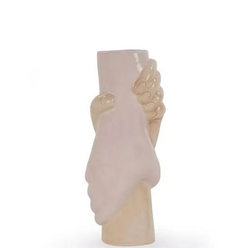 Vriendschapvaas van Bitten, in de vorm van twee handen die elkaar vasthouden.